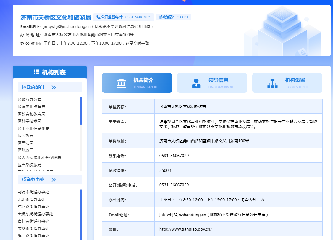 根据《中华人民共和国政府信息公开条例》及有关法律法规要求,现向社会公布2025年本部门政府信息公开工作年度报告。报告分为总体情况、主动公开政府信息情况、收到和处理政府信息公开申请情况、政府信息公开行政复议、行政诉讼情况、存在的主要问题及改进情况、其他需要报告的事项六个方面。本报告中所列数据的统计期限自2025年1月1日起,至2025年12月31日止。本报告的电子版可在“天桥区政府网”门户网站()查阅。如对报告有任何疑问或意见建议,请直接与天桥区文化和旅游局联系。